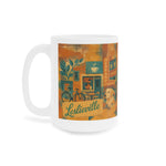 From desk-side coffee to kitchen-table brainstorming, this white ceramic mug fits right in, whether you're downtown or dialing in from home.