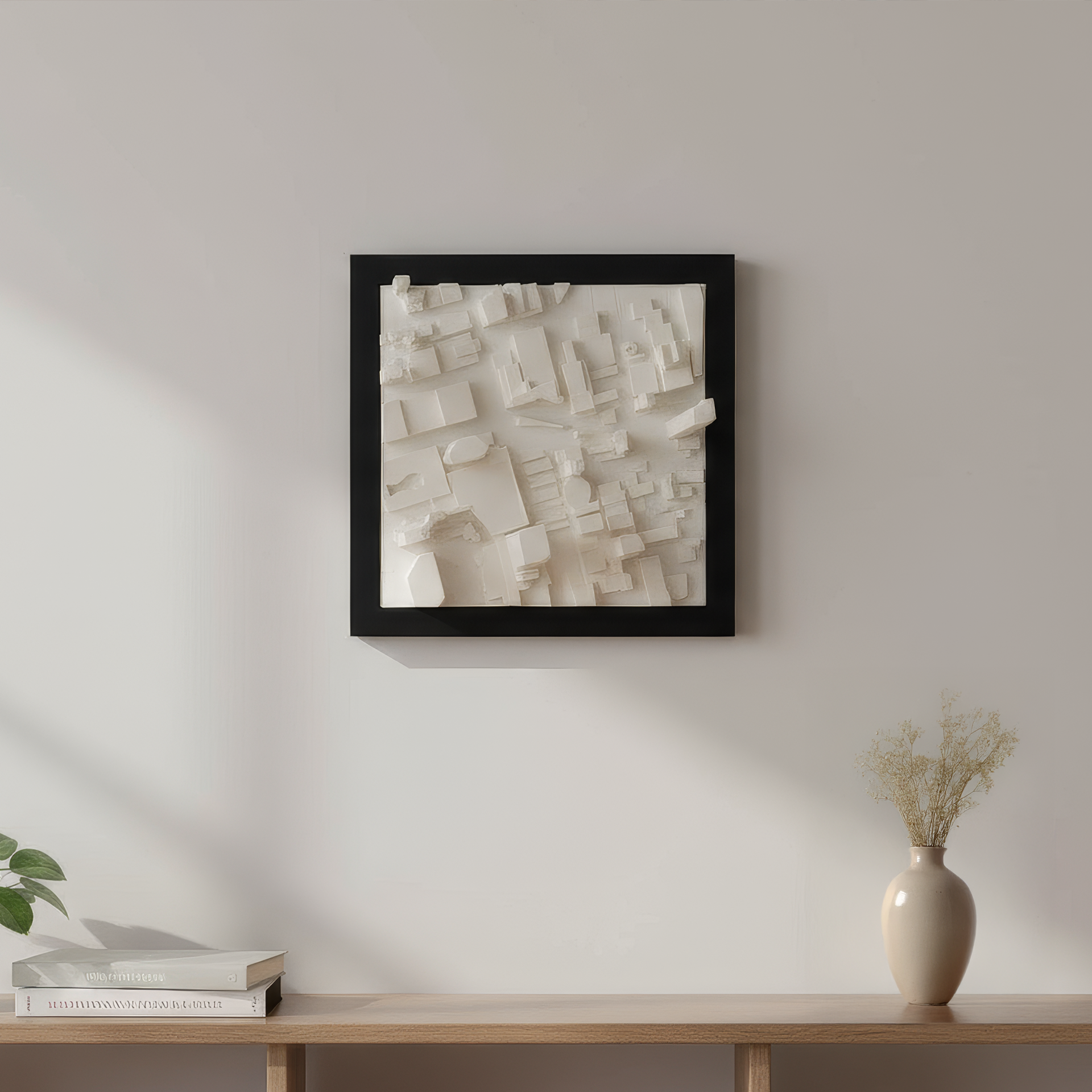 A custom framed ~1:5200 scale model of your Toronto block. Enter your address and we craft a detailed neighbourhood piece for desk or wall.